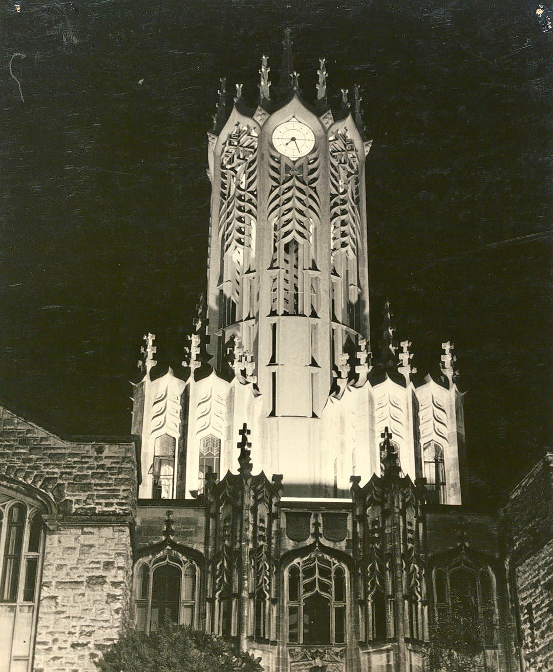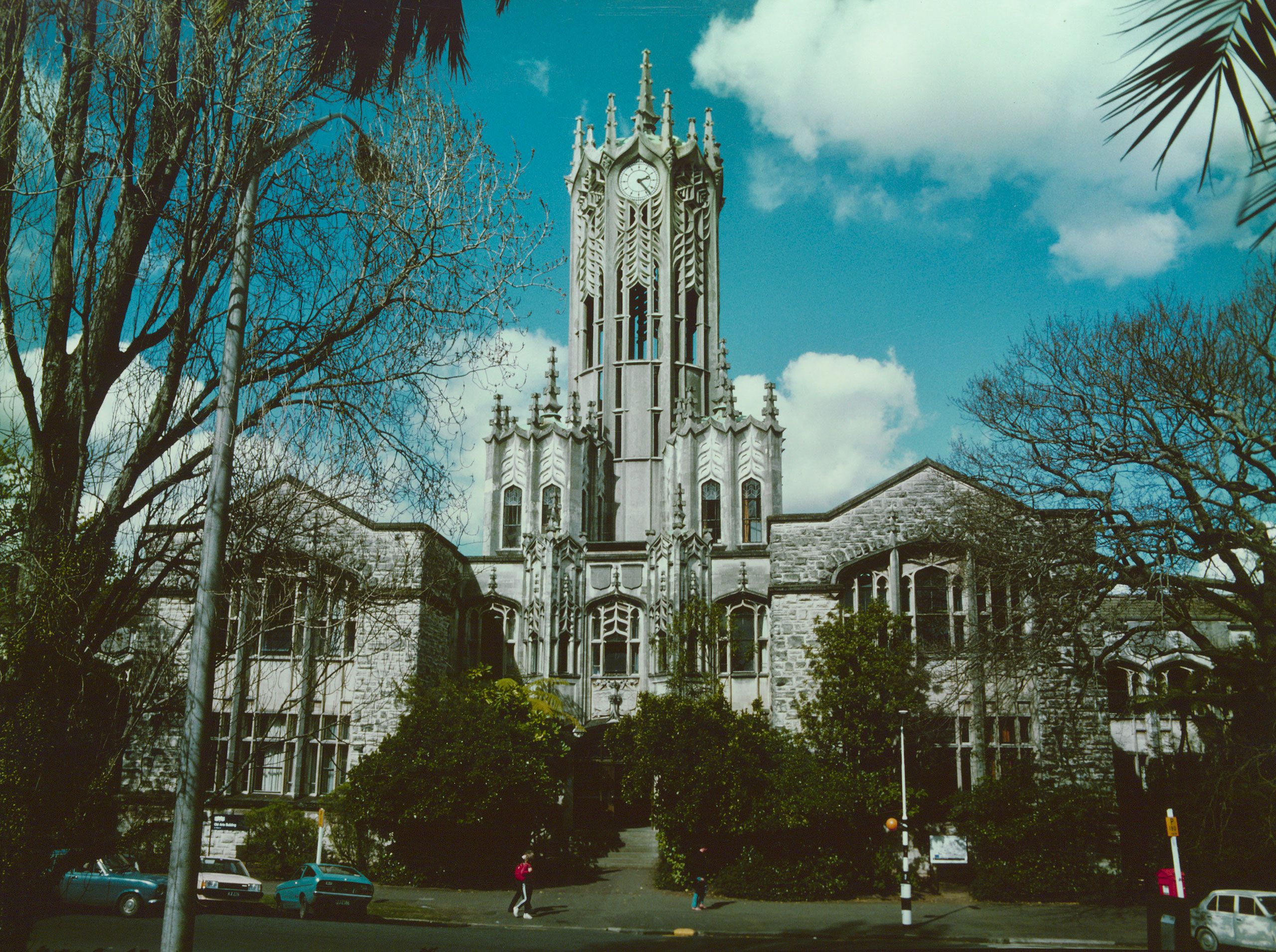 American-born Lippincott moved from Melbourne to Auckland to oversee the build, which raised some eyebrows. Many expected a more traditional, ‘English’ design, but the winning plan was heavily influenced by the Arts and Crafts movement of the time, embracing elements of the natural world, including native flora and fauna. Where gargoyles might conventionally sit, the design placed kākā and kea, while ponga fronds and kōwhai flowers provide other decorative flourishes on the building’s exterior.